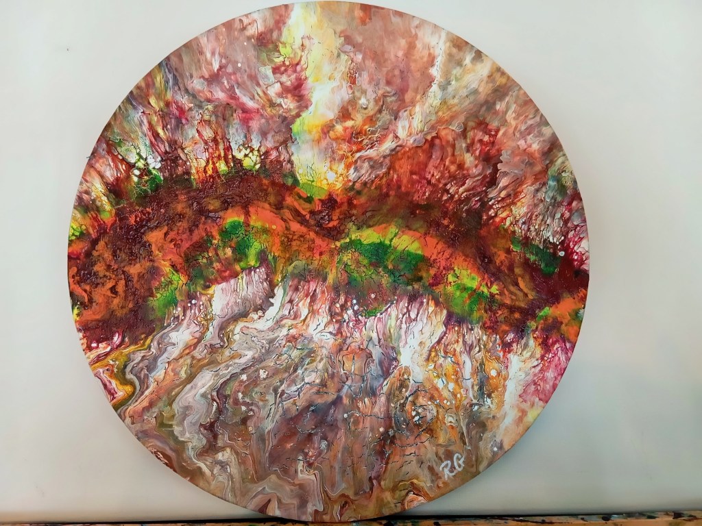 Acrylic on canvas and epoxyCircular 40 cm diameter 300 Euros